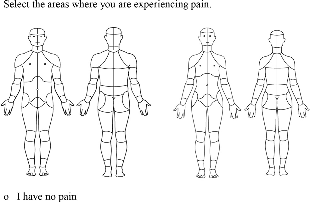 Scherrer, Kristen Hymel; Ziadni, Maisa S; Kong, Jiang-Tia; Sturgeon, John A; Salmasi, Vafia; Hong, Juliette; Cramer, Eric; Chen, Abby L; Pacht, Teresa; Olson, Garrick; Darnall, Beth D; Kao, Ming-Chih; Mackey, Sean. Development and validation of the Collaborative Health Outcomes Information Registry body map, PAIN Reports: January/February 2021 - Volume 6 - Issue 1 - p e880 doi: 10.1097/PR9.0000000000000880