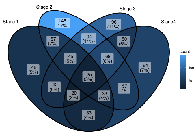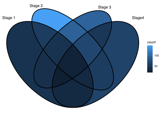 ggVennDiagram(x,category.names = c("Stage 1","Stage 2","Stage 3", "Stage4"))