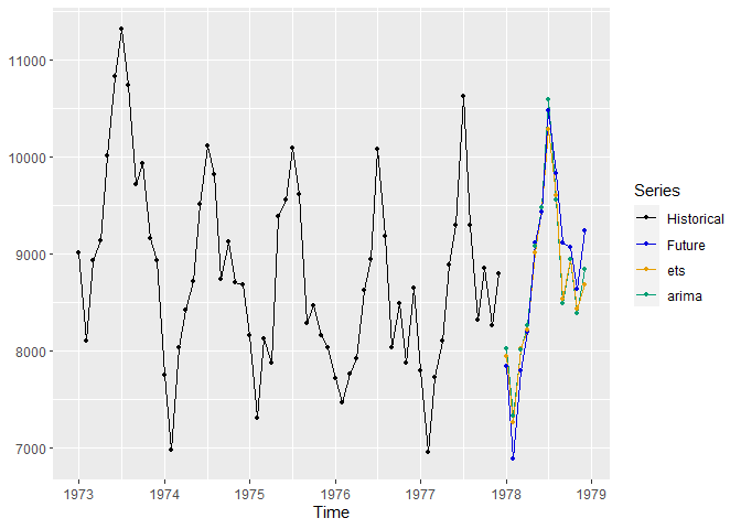 arima_f <- forecast(arima_fit, h = length(fut)) # ARIMA forecast